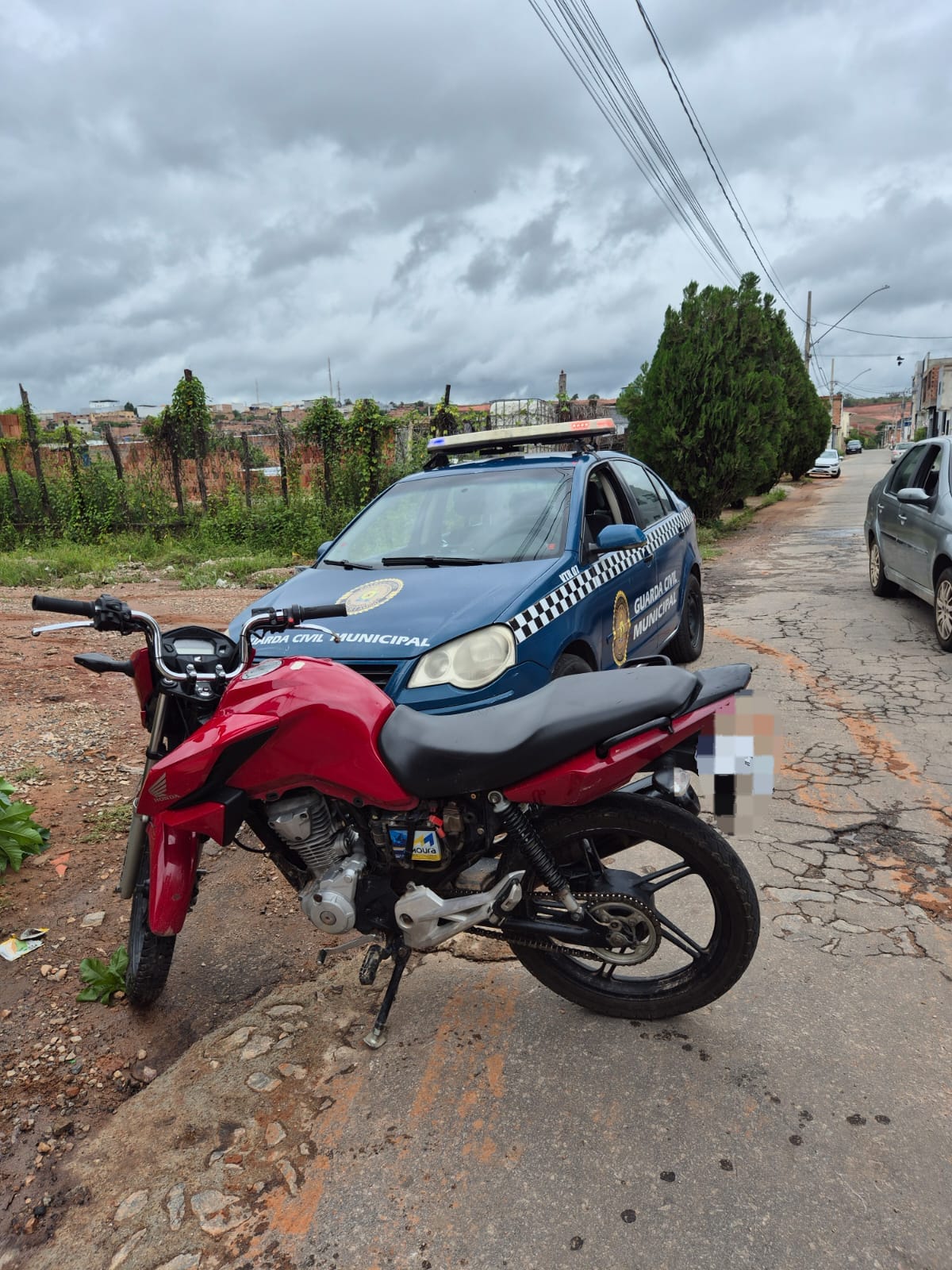 Uma motocicleta com registro de roubo ou furto foi recuperada pela Guarda Civil Municipal na manhã desta quarta-feira (10), no bairro Beija Flor, em Nova Serrana. O veículo foi localizado abandonado às margens de uma via pública durante uma ação de policiamento de rotina, apresentando sinais de irregularidades, como a placa traseira parcialmente levantada e a ausência de retrovisores.