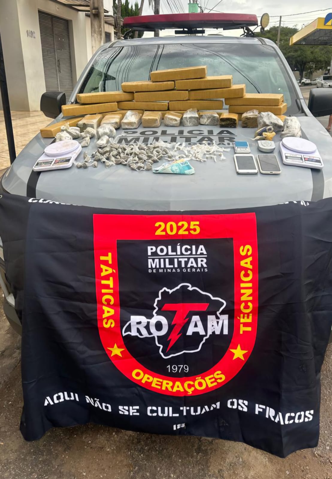 Nesta quarta-feira (8), uma ação integrada de combate ao tráfico de drogas em Minas Gerais, com apoio da ROTAM, resultou na apreensão de significativa quantidade de entorpecentes e materiais utilizados na atividade criminosa, no município de Nova Serrana. A operação foi desencadeada após levantamento de informações e diligências que apontavam a prática de tráfico na região.