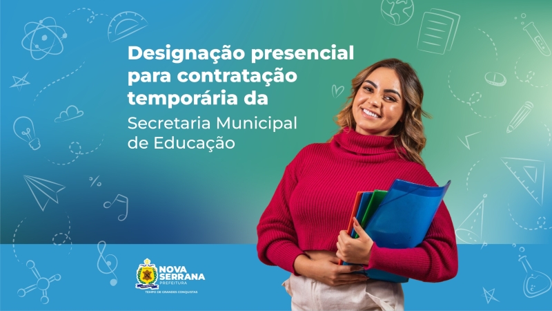 A Prefeitura de Nova Serrana, por meio da Secretaria Municipal de Educação, realiza nesta terça-feira (3) a designação presencial para composição do cadastro de reserva da rede municipal de ensino.